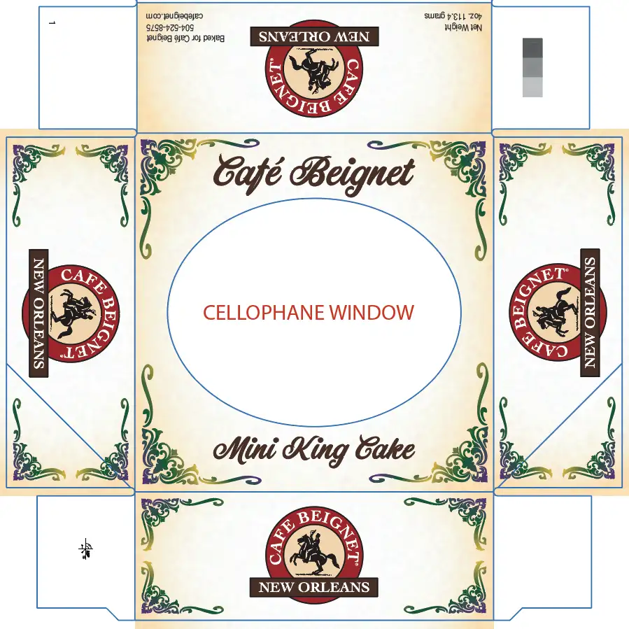 Another favorite is the king cake box, designed using sturdy white cardstock and finished with a cellophane window. This combination offers both structural integrity and product visibility—an important factor when showcasing baked goods. The window creates an immediate connection with the customer, letting the product speak for itself while the surrounding design reinforces the brand.